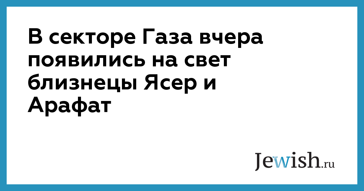 Только в приемном покое больницы Газы роженице сообщили что у нее будут близнецы. Молодые родители, не долго думая, решили назвать сыновей Ясером и Арафатом.