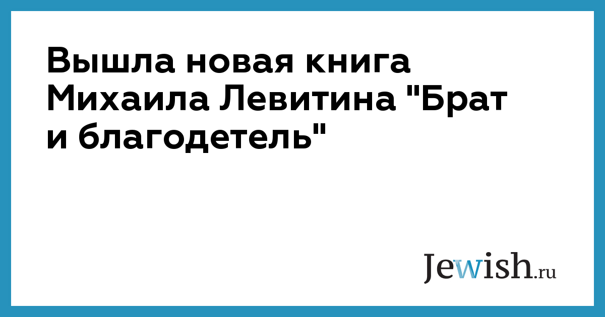 Вышла новая книга Михаила Левитина "Брат и благодетель"