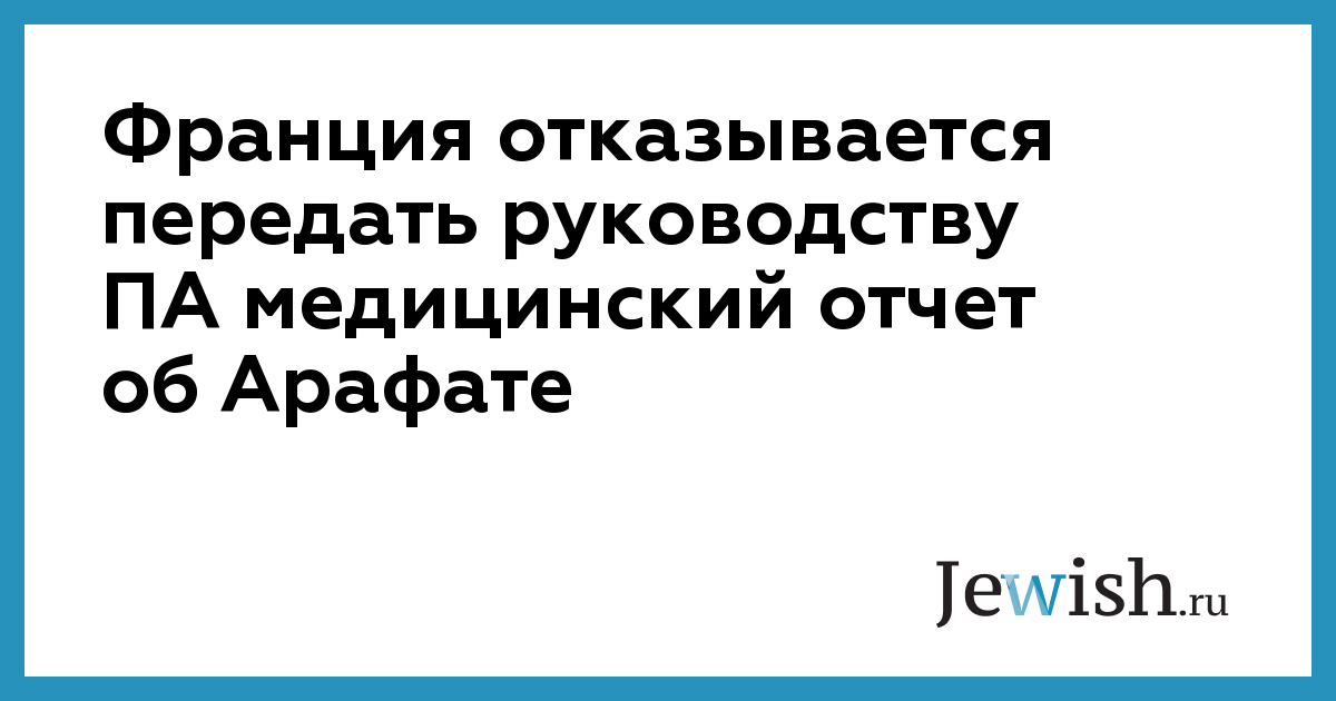 Франция отказывается передать руководству ПА медицинский отчет об Арафате