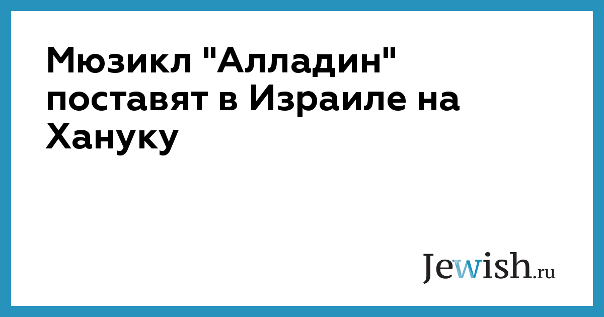 Мюзикл "Алладин" поставят в Израиле на Хануку