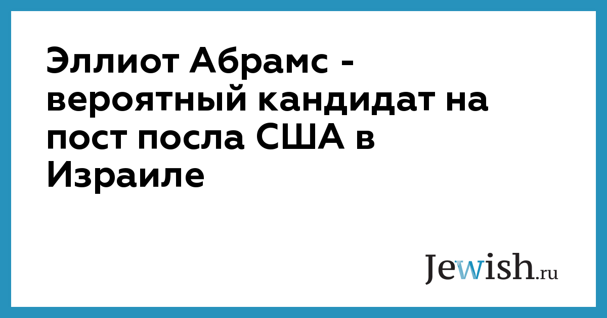 Эллиот Абрамс — вероятный кандидат на пост посла США в Израиле