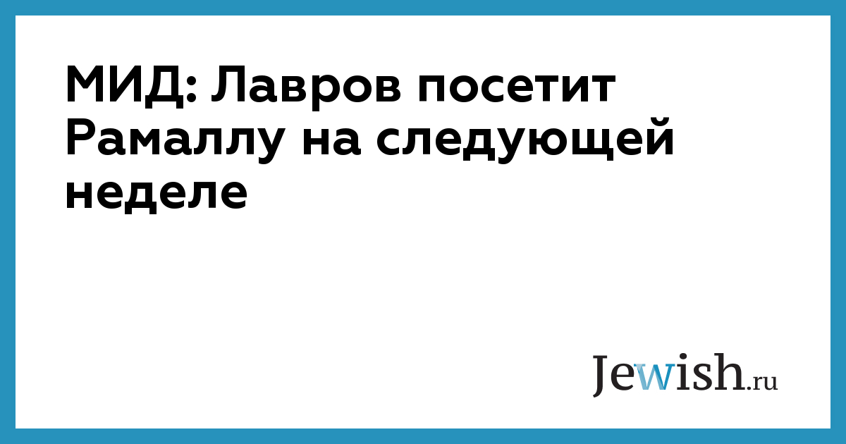 МИД: Лавров посетит Рамаллу на следующей неделе
