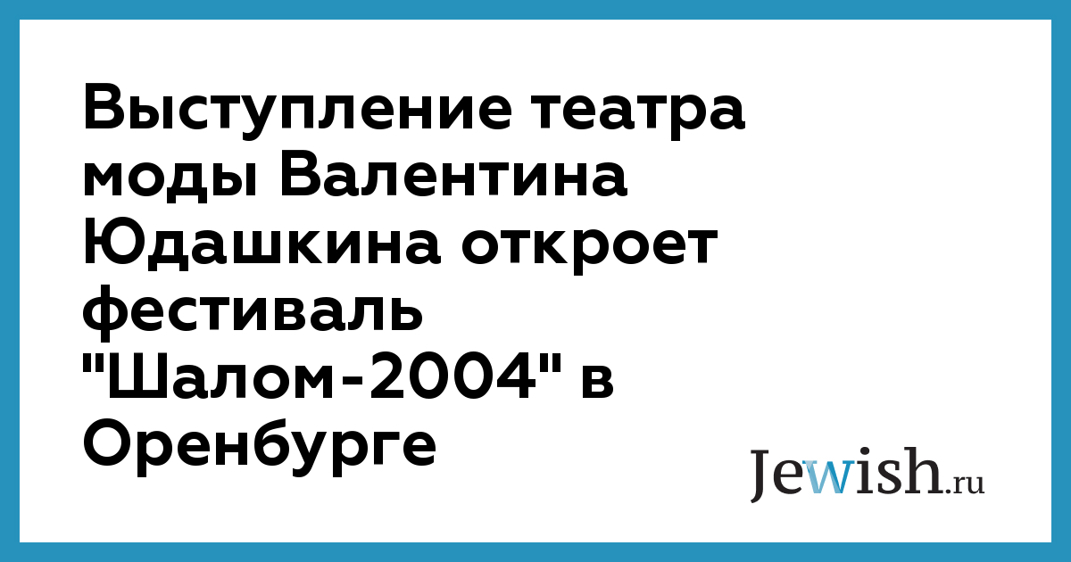 Выступление театра моды Валентина Юдашкина откроет фестиваль "Шалом-2004" в Оренбурге