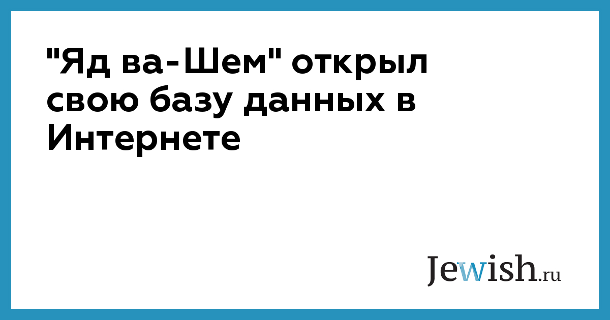 "Яд ва-Шем" открыл свою базу данных в Интернете