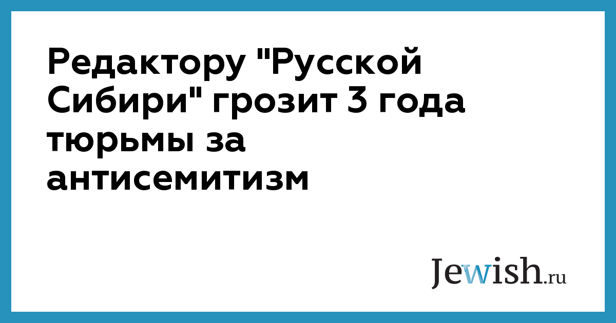 Редактору ''Русской Сибири'' грозит 3 года тюрьмы за антисемитизм