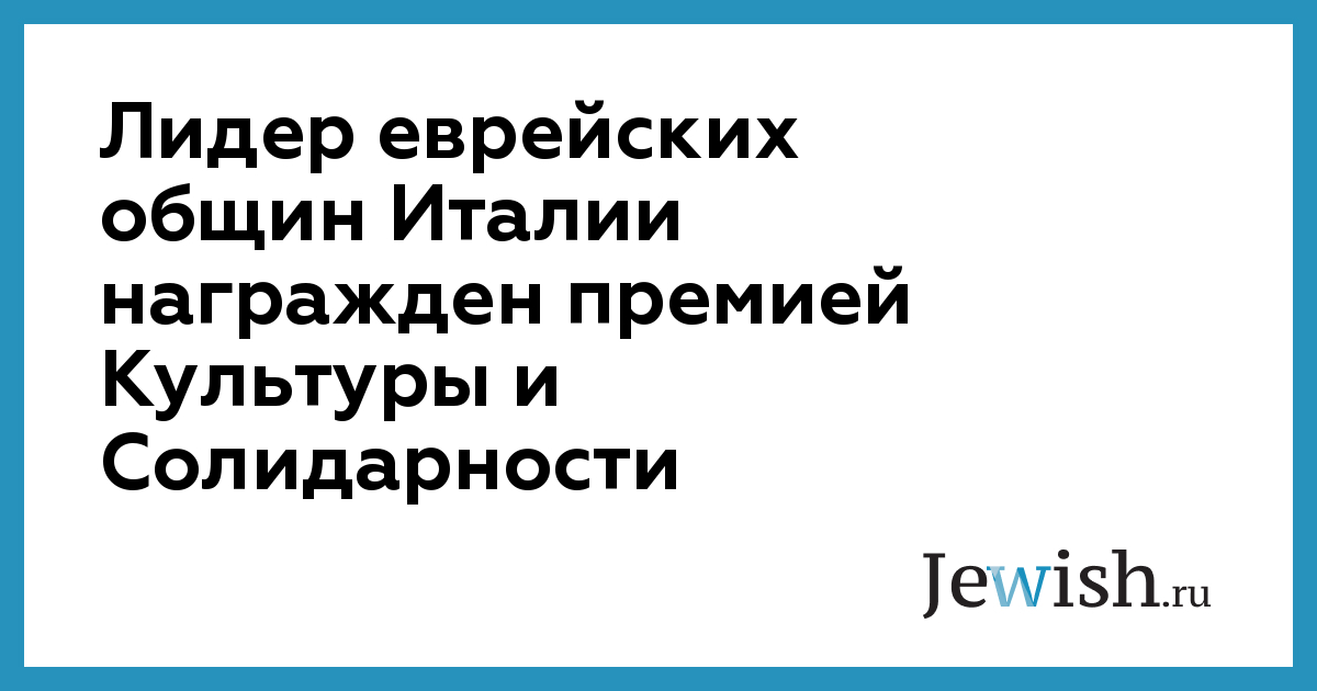 Лидер еврейских общин Италии награжден премией Культуры и Солидарности