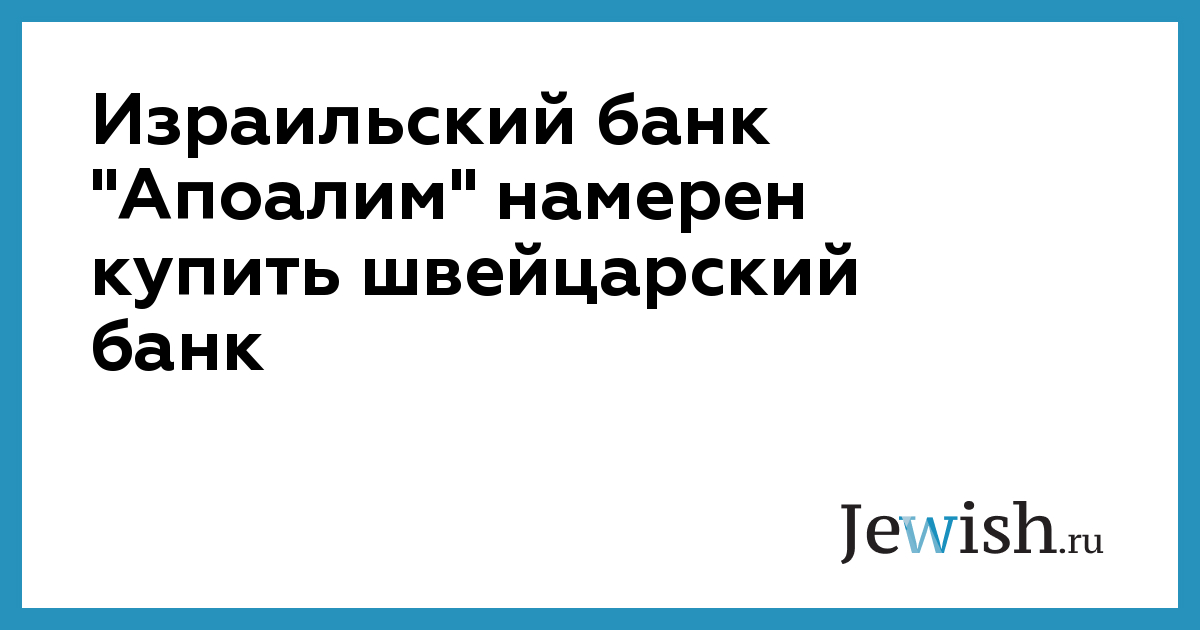 Израильский банк "Апоалим" намерен купить швейцарский банк