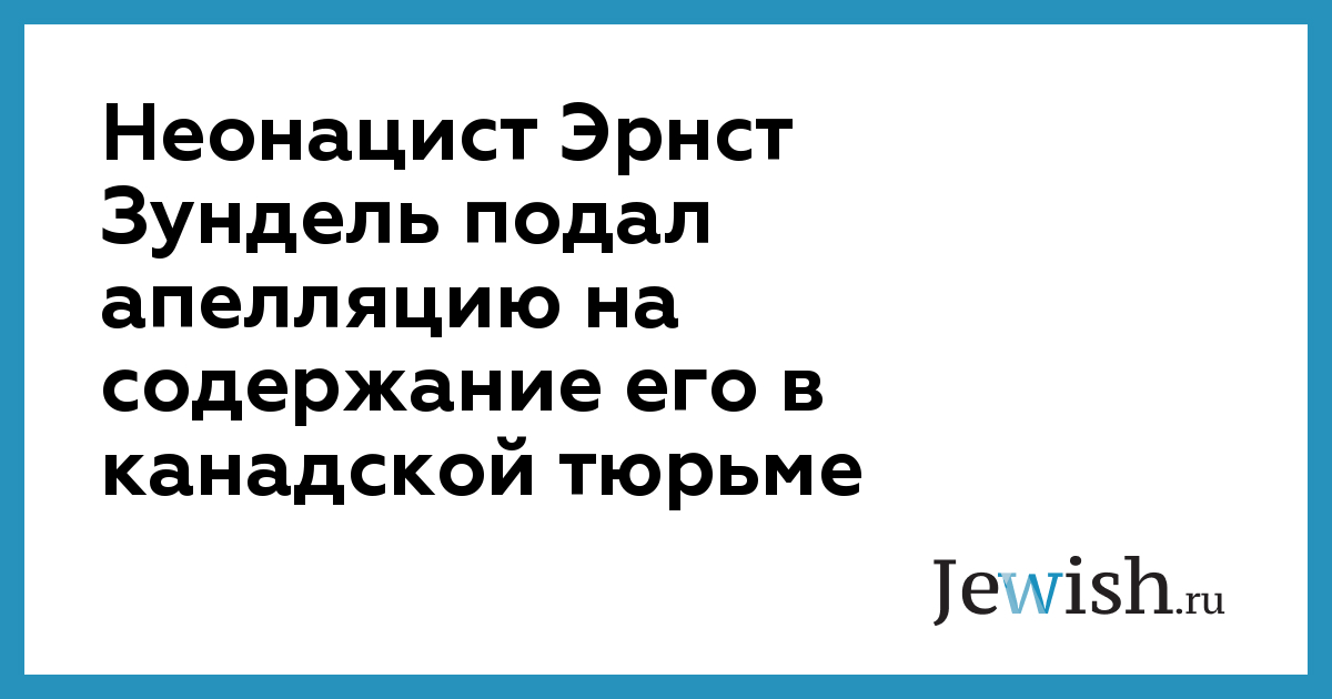 Напомним, что известный своими высказываниями, отрицающими Катастрофу еврейского народа, Эрнст Зундель был лишен подать апелляцию на якобы, незаконное содержание его в тюрьме. Идеолог неонацизма содержится в канадской тюрьме по обвинению в представлении угрозы национальной безопасности Канады.