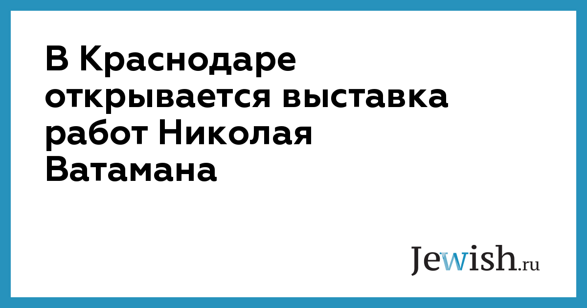 В Краснодаре открывается выставка работ Николая Ватамана