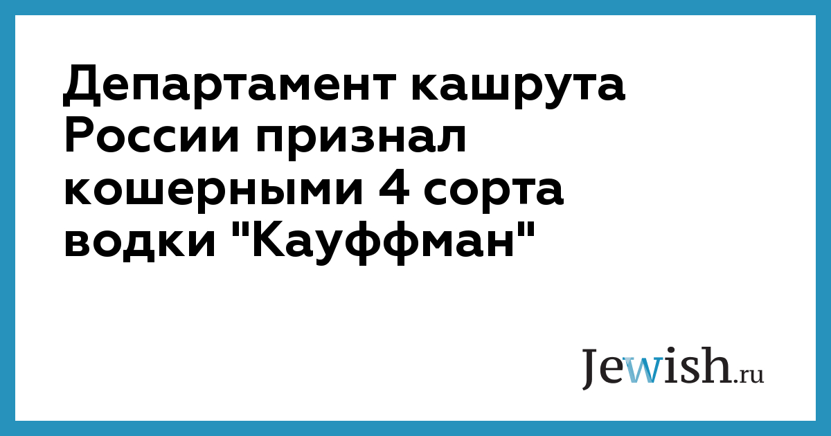 Департамент кашрута России признал кошерными 4 сорта водки "Кауффман"