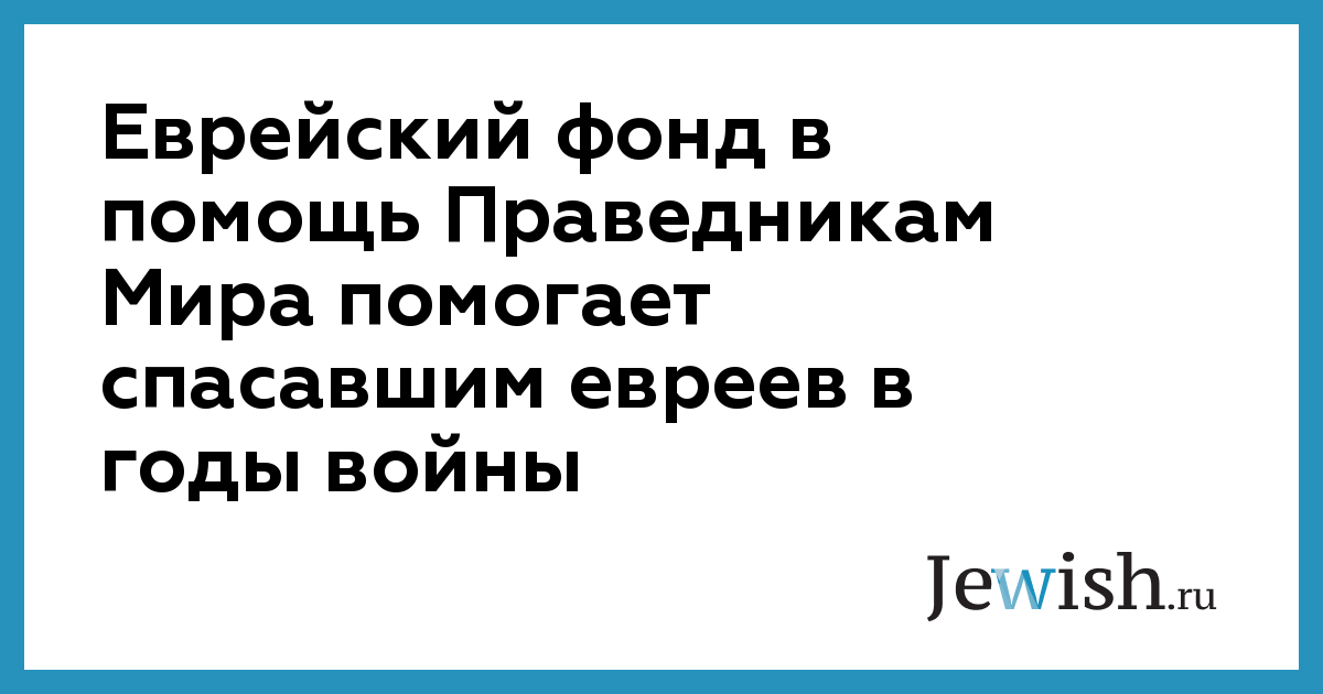 Еврейский фонд в помощь Праведникам Мира помогает спасавшим евреев в годы войны