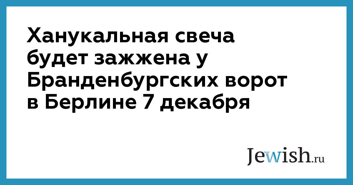 Ханукальная свеча будет зажжена у Бранденбургских ворот в Берлине 7 декабря