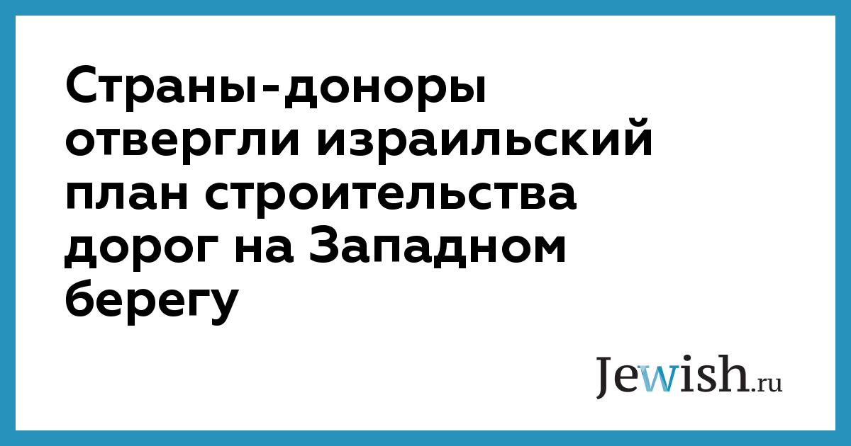 Страны-доноры отвергли израильский план строительства дорог на Западном берегу