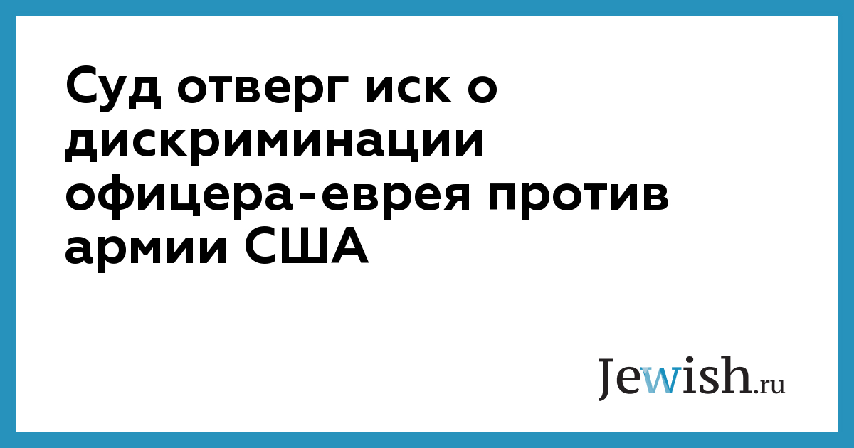 Суд отверг иск о дискриминации офицера-еврея против армии США