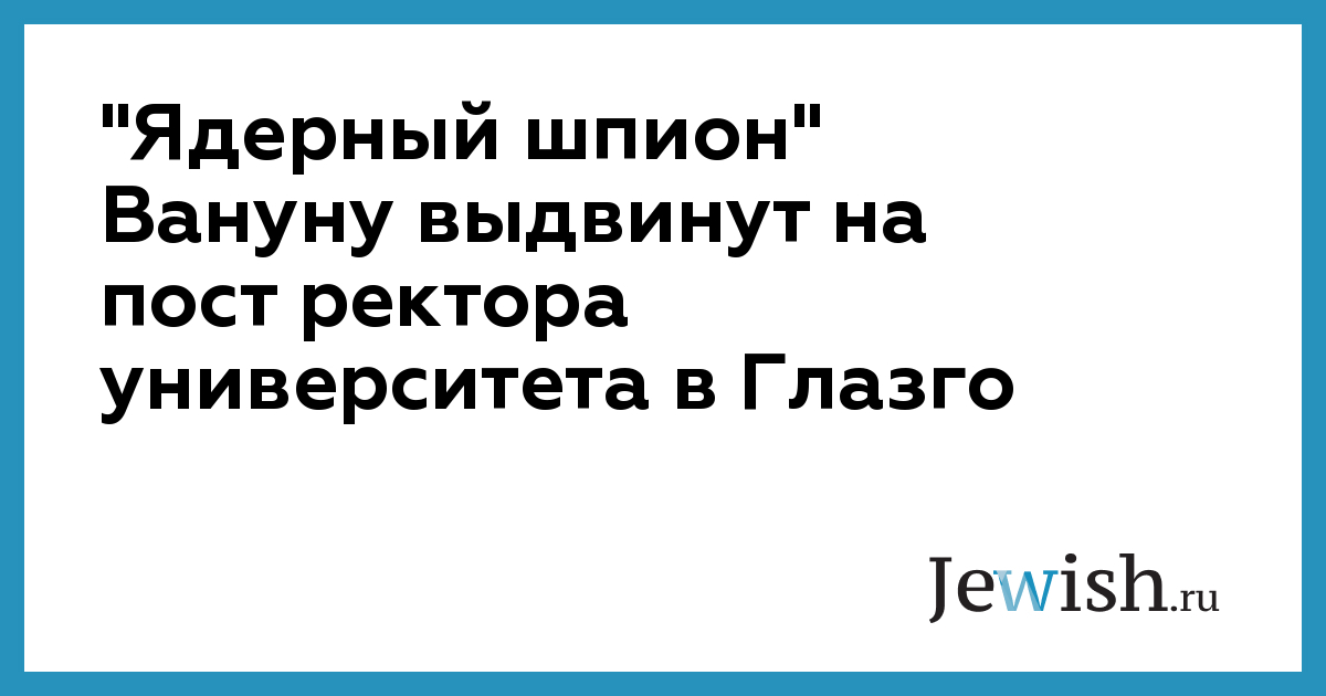 "Ядерный шпион" Вануну выдвинут на пост ректора университета в Глазго