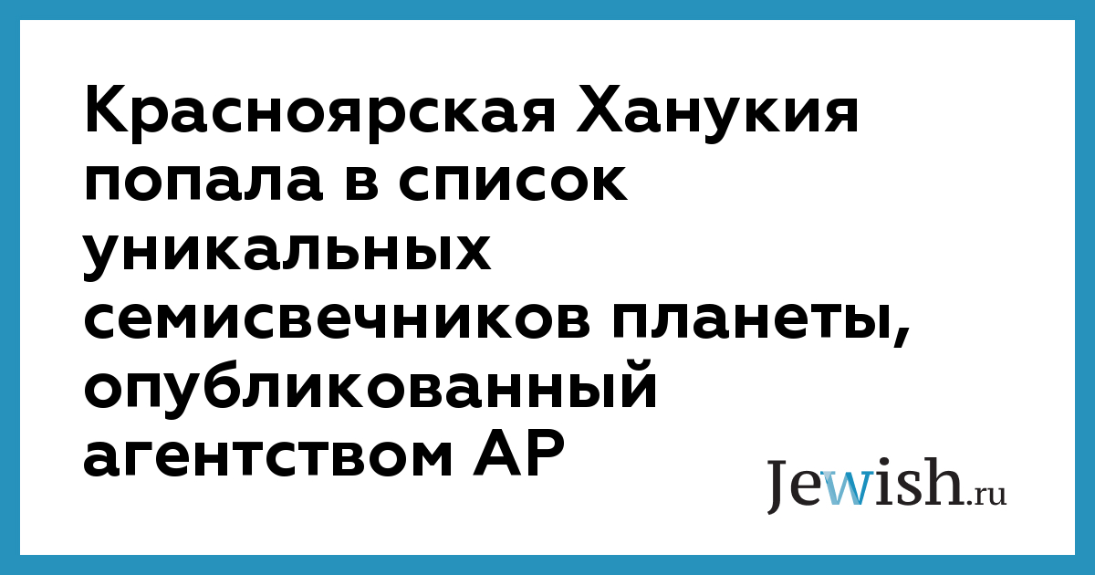 Красноярская Ханукия попала в список уникальных семисвечников планеты, опубликованный агентством АР