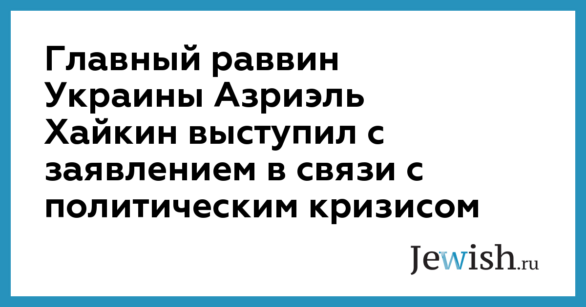 Главный раввин Украины Азриэль Хайкин выступил с заявлением в связи с политическим кризисом