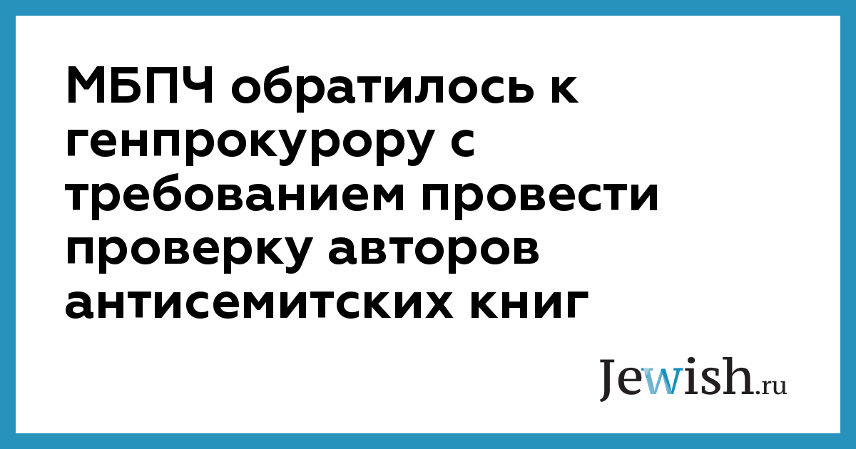 МБПЧ обратилось к генпрокурору с требованием провести проверку авторов антисемитских книг