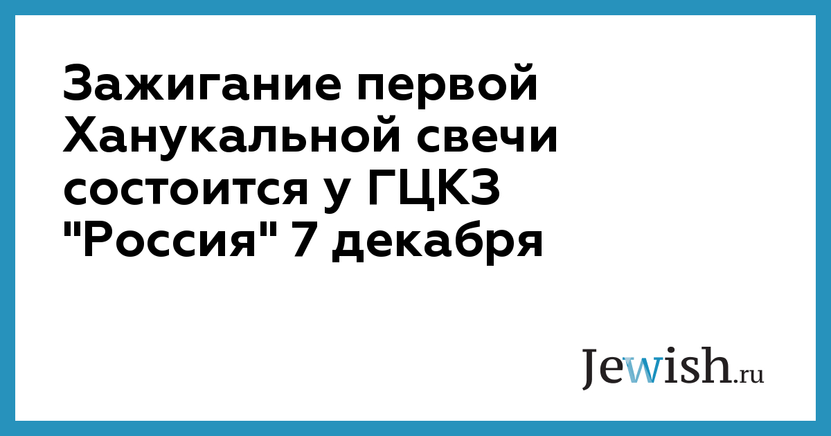Зажигание первой Ханукальной свечи состоится у ГЦКЗ "Россия" 7 декабря