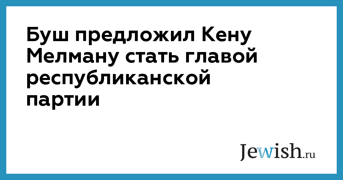 Буш предложил Кену Мелману стать главой республиканской партии