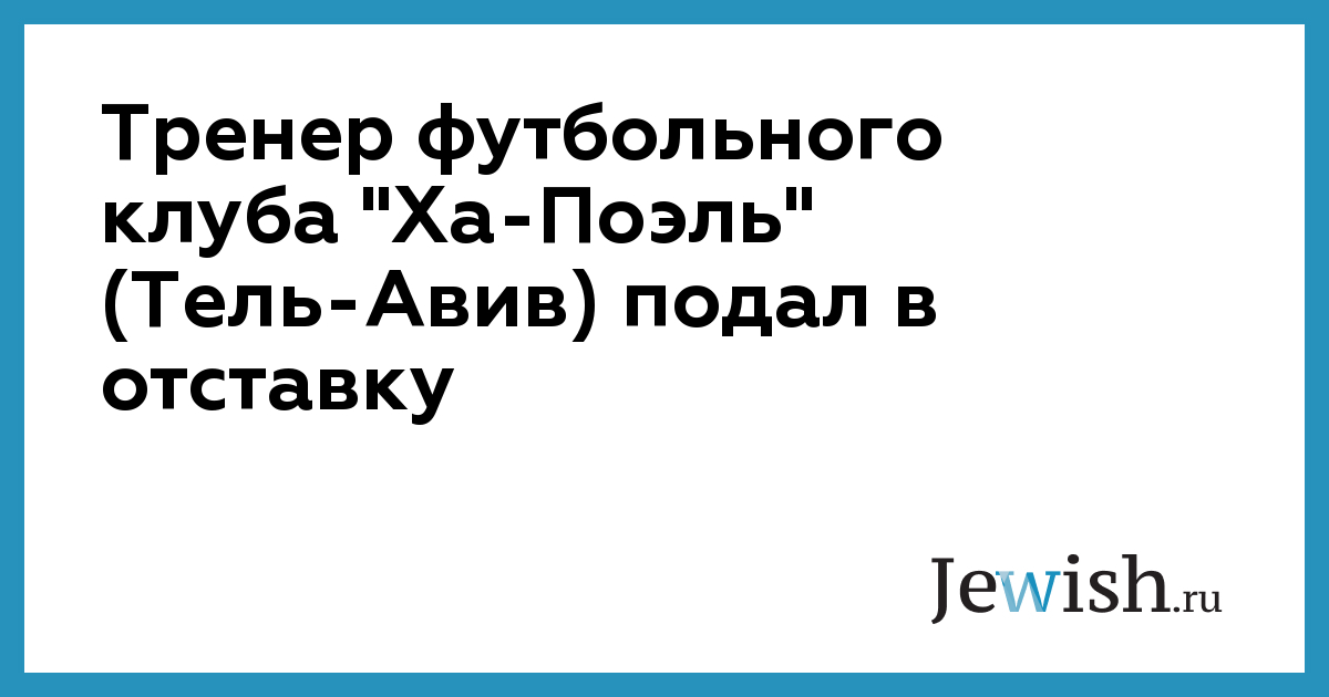 Тренер футбольного клуба "Ха-Поэль" (Тель-Авив) подал в отставку