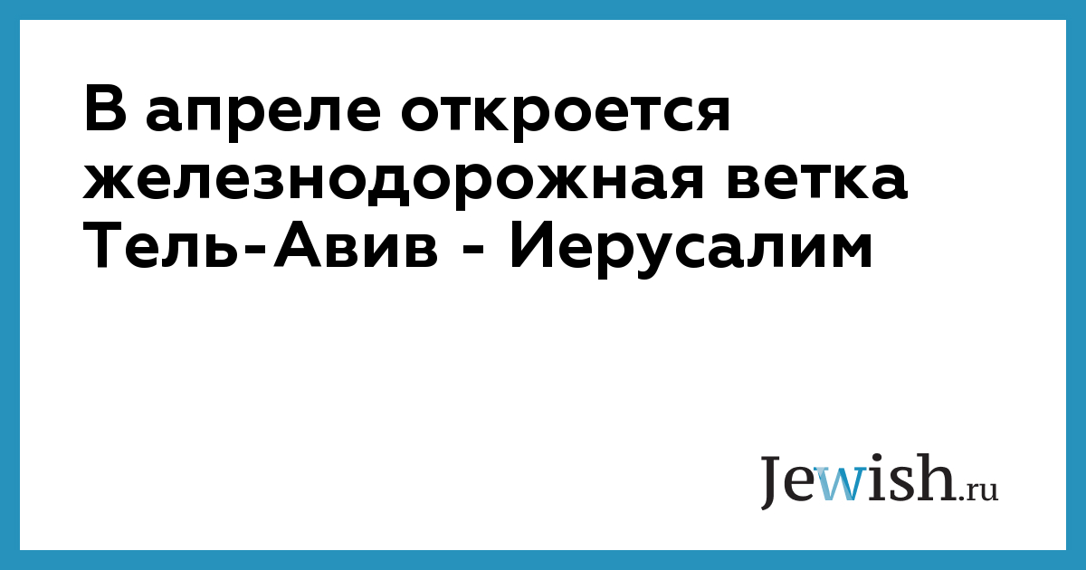 В апреле откроется железнодорожная ветка Тель-Авив — Иерусалим