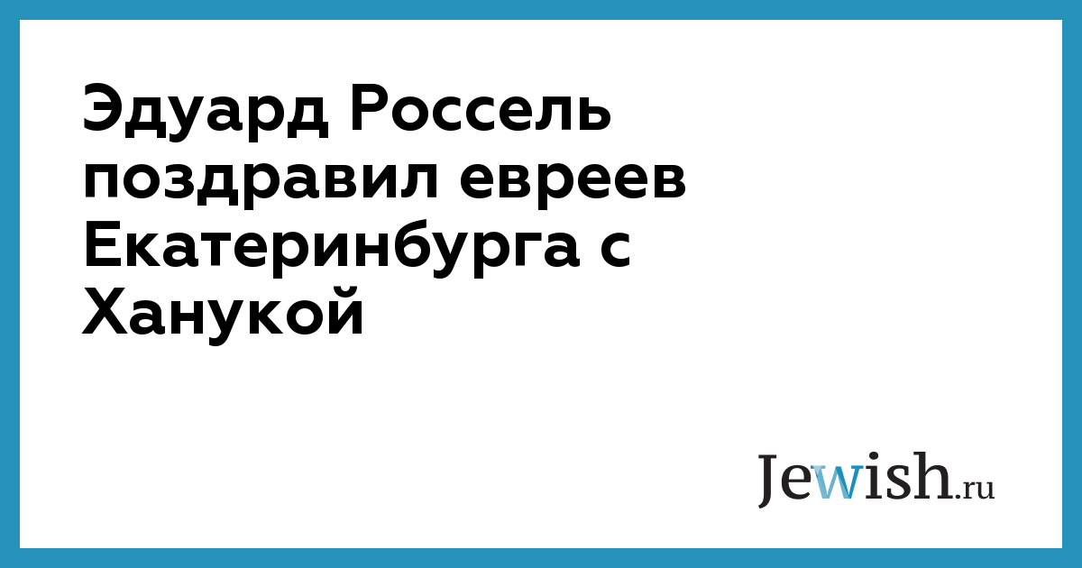Эдуард Россель поздравил евреев Екатеринбурга с Ханукой