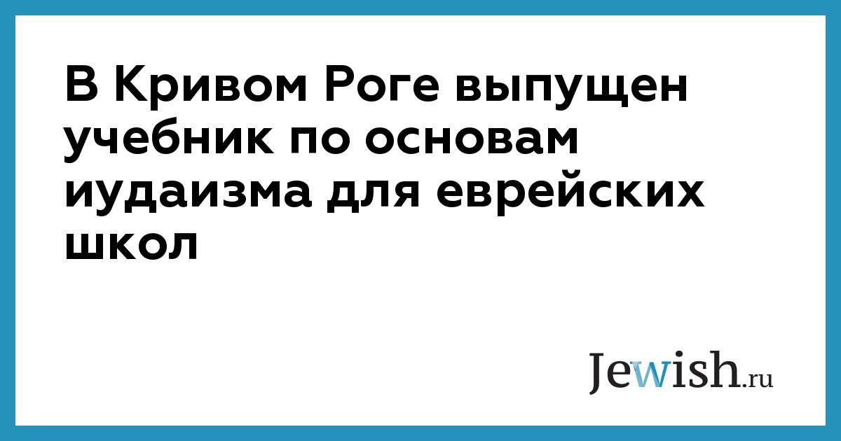 В Кривом Роге выпущен учебник по основам иудаизма для еврейских школ