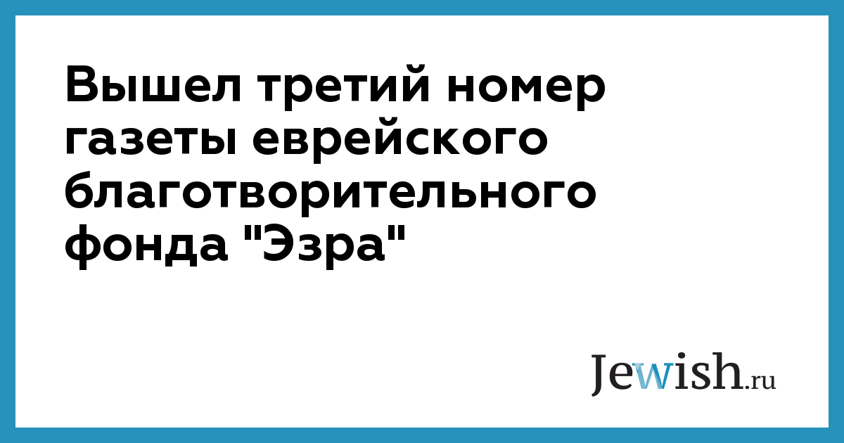 Вышел третий номер газеты еврейского благотворительного фонда "Эзра"