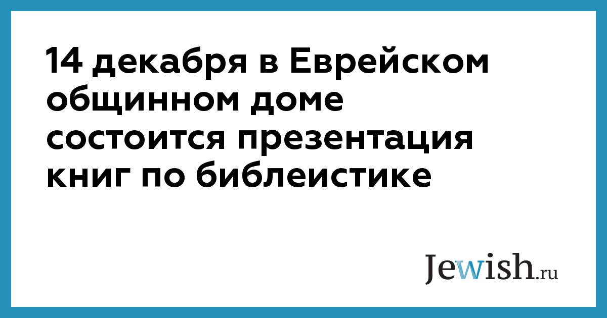 14 декабря в Еврейском общинном доме состоится презентация книг по библеистике