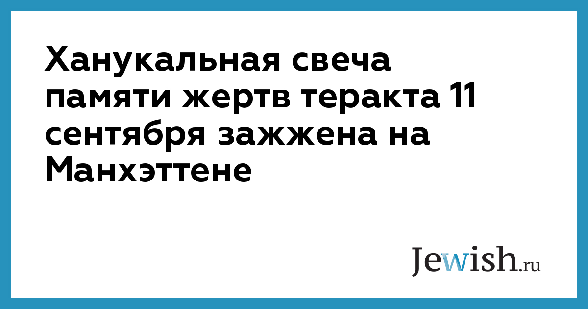 Ханукальная свеча памяти жертв теракта 11 сентября зажжена на Манхэттене