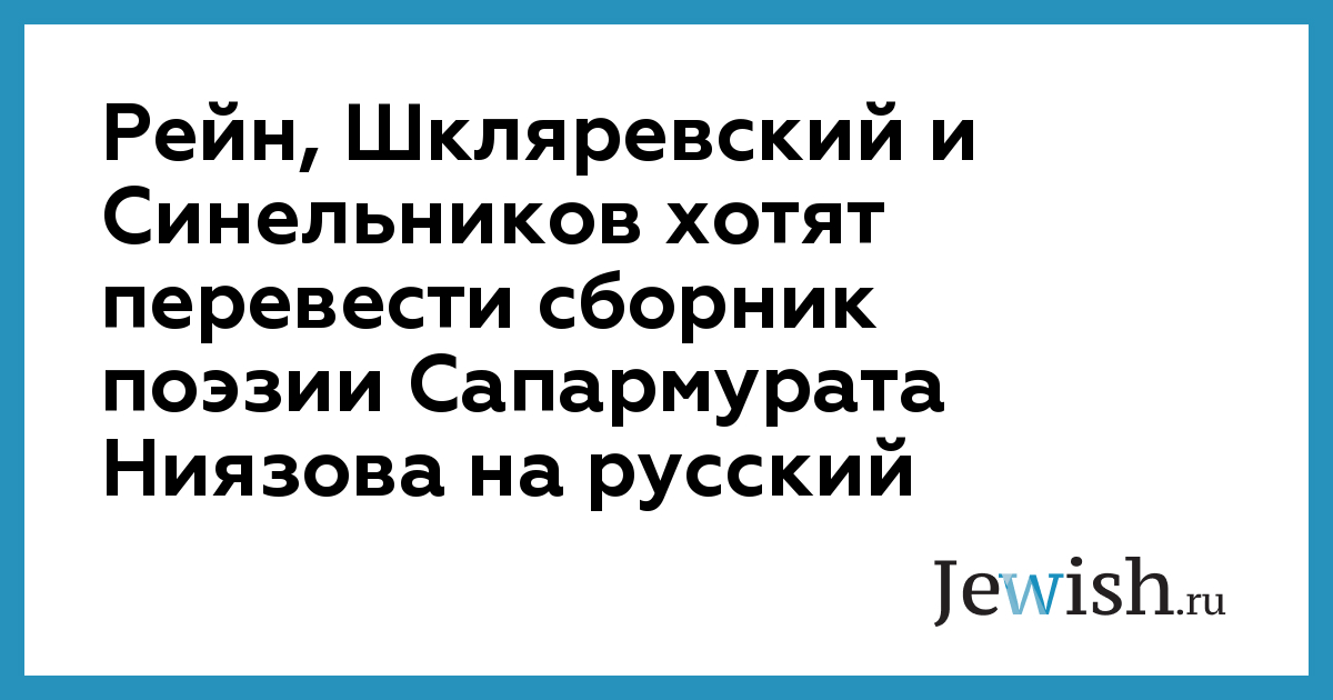Рейн, Шкляревский и Синельников хотят перевести сборник поэзии Сапармурата Ниязова на русский