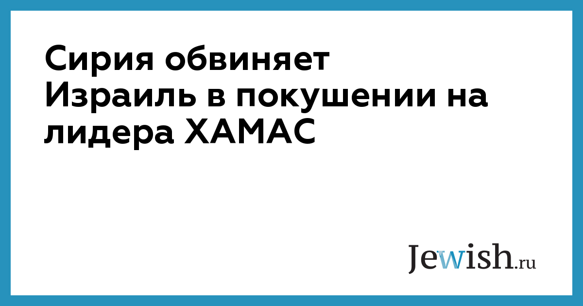 Сирия обвиняет Израиль в покушении на лидера ХАМАС