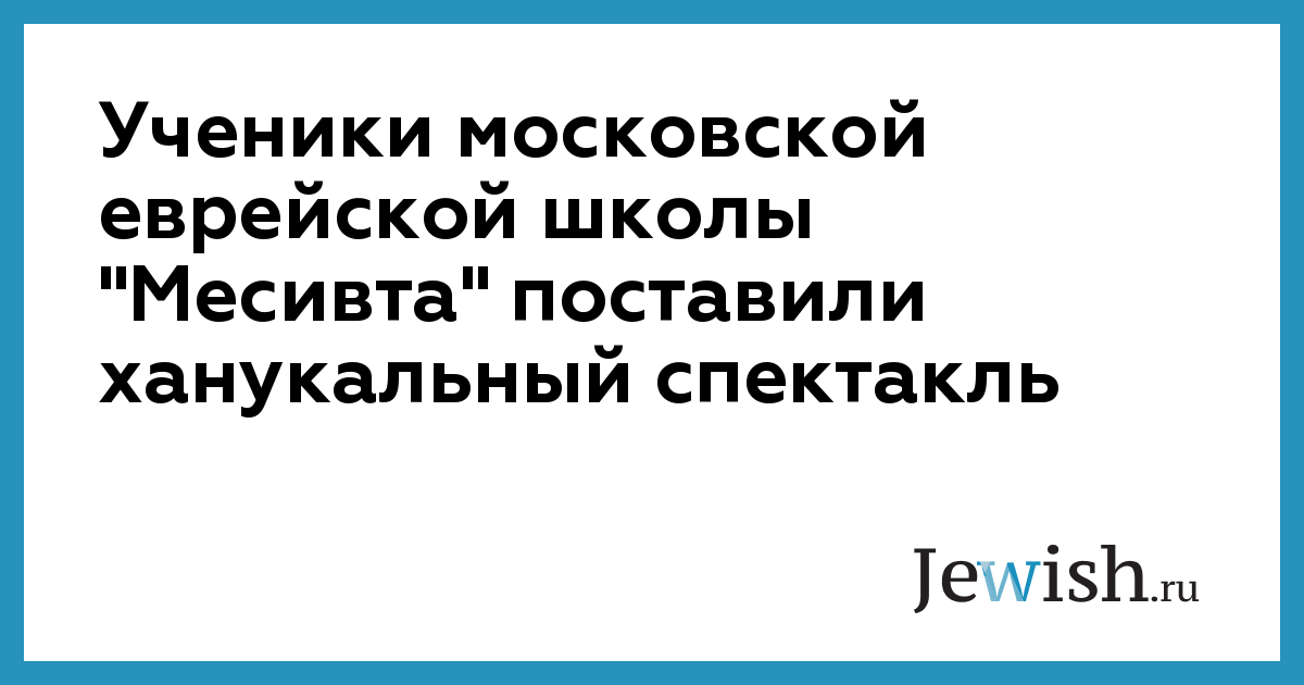 Ученики московской еврейской школы "Месивта" поставили ханукальный спектакль
