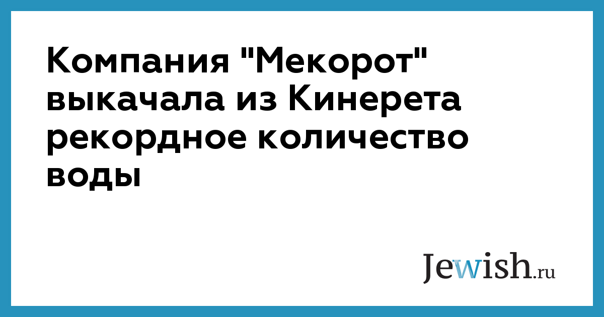 Компания "Мекорот" выкачала из Кинерета рекордное количество воды