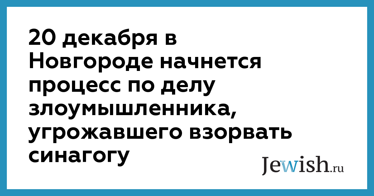20 декабря в Новгороде начнется процесс по делу злоумышленника, угрожавшего взорвать синагогу