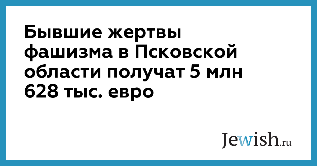 Как сообщает псковский региональный выпуск «Комсомольской правды», в Псковской области 4 тысячи 32 человека получат 5 млн 628 тысяч евро. «Это самый крупный транш из всех когда-либо переведенных германским фондом в Россию», — сказала в интервью газете пресс-секретарь Фонда взаимопонимания и примирения Татьяна Соколова.