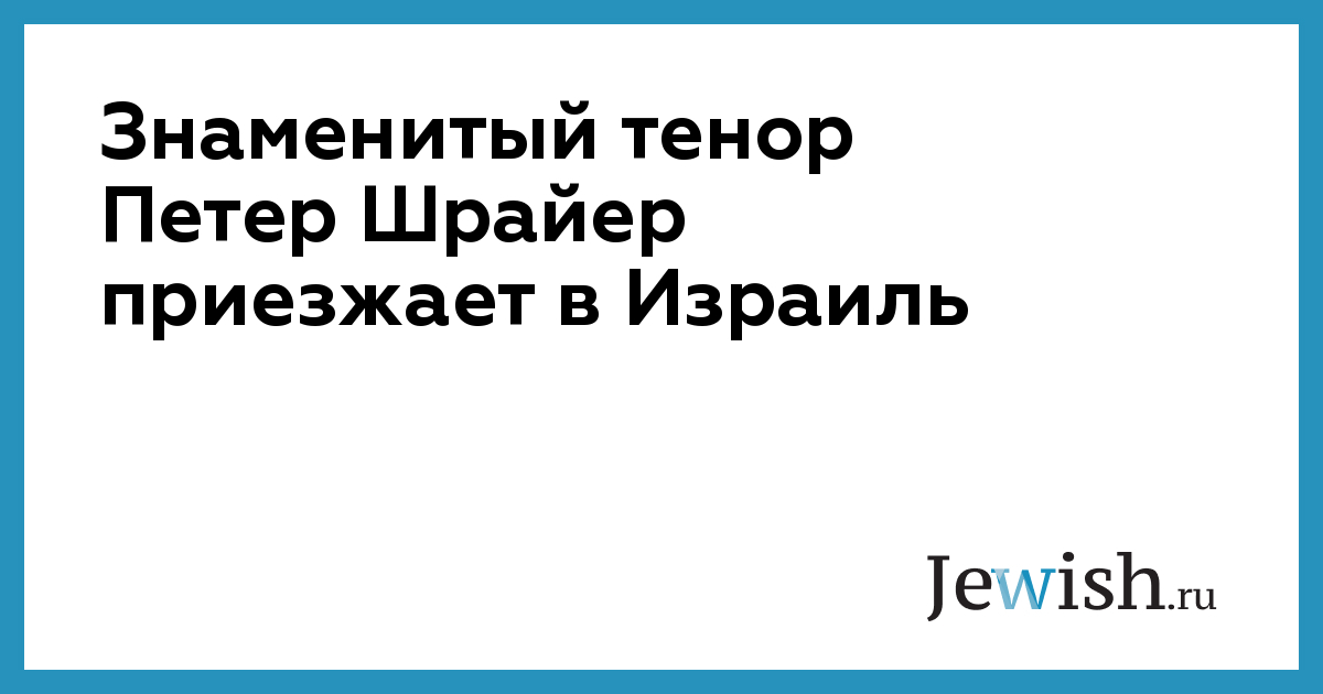 Знаменитый тенор Петер Шрайер приезжает в Израиль