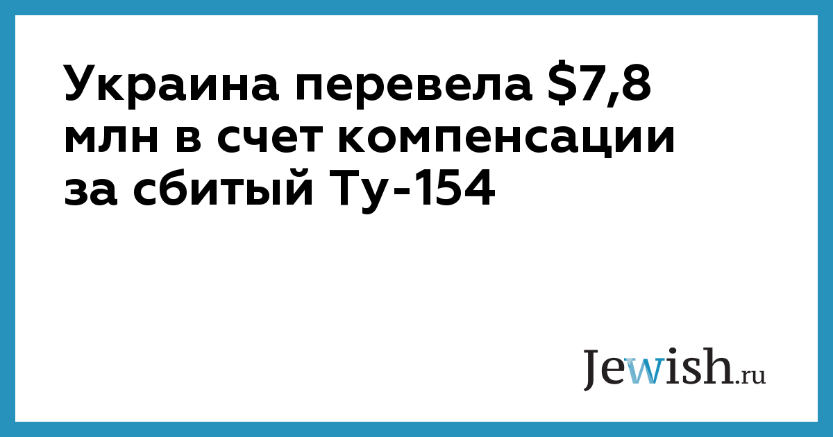 Украина перевела $7,8 млн в счет компенсации за сбитый Ту-154