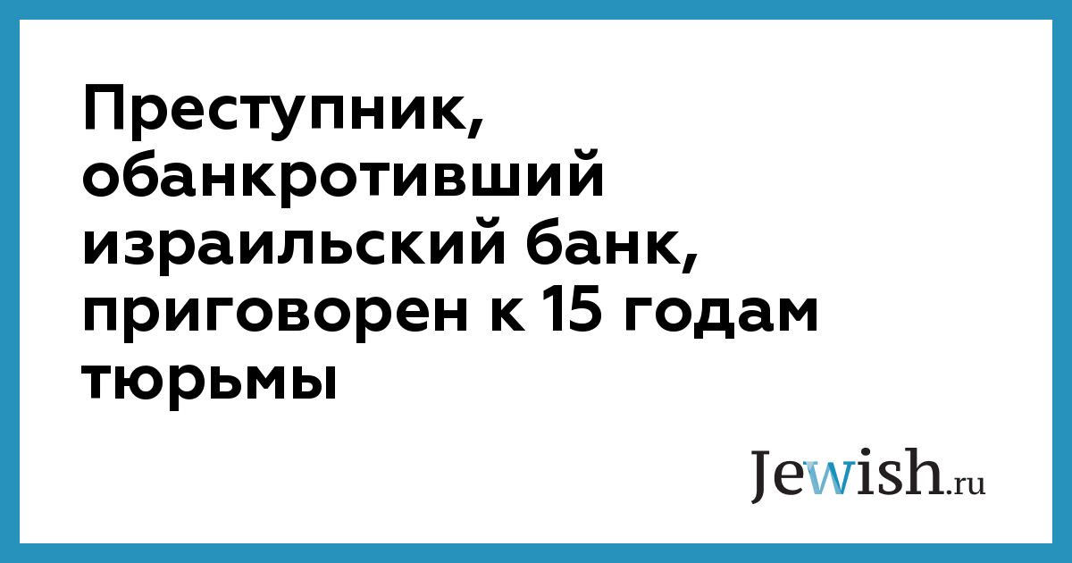 Преступник, обанкротивший израильский банк, приговорен к 15 годам тюрьмы