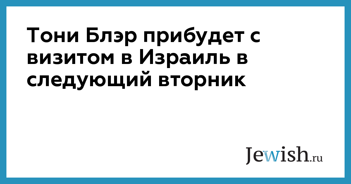 Тони Блэр прибудет с визитом в Израиль в следующий вторник
