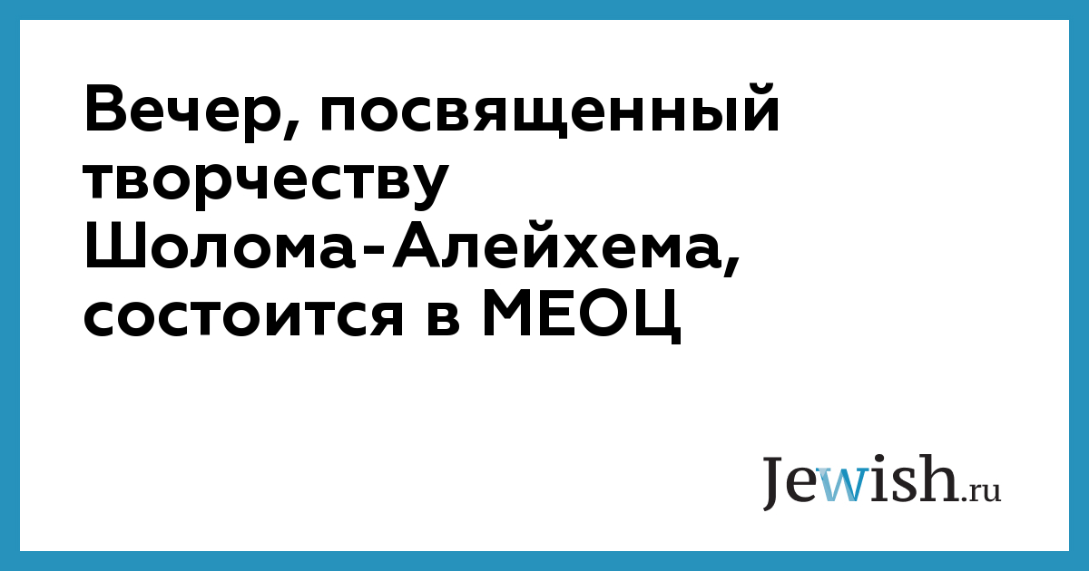 Вечер, посвященный творчеству Шолома-Алейхема, состоится в МЕОЦ