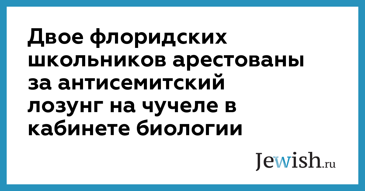 Двое флоридских школьников арестованы за антисемитский лозунг на чучеле в кабинете биологии