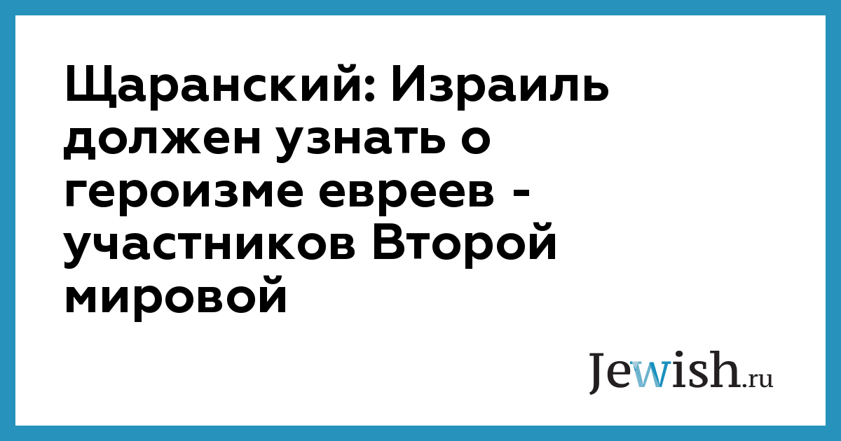 Щаранский: Израиль должен узнать о героизме евреев — участников Второй мировой