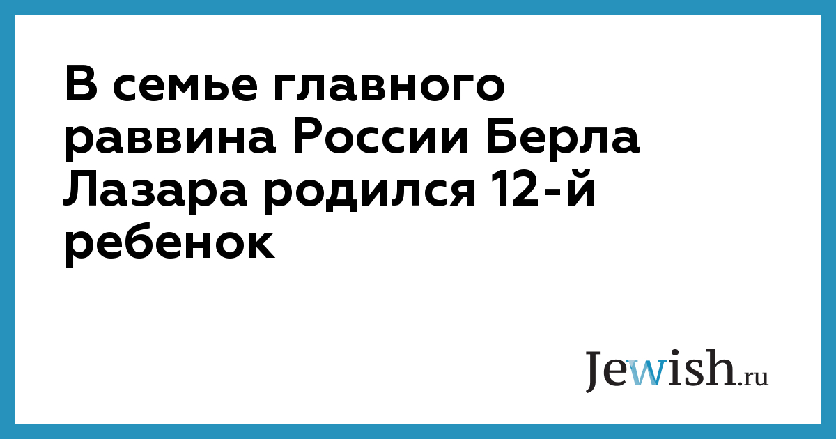 В семье главного раввина России Берла Лазара родился 12-й ребенок