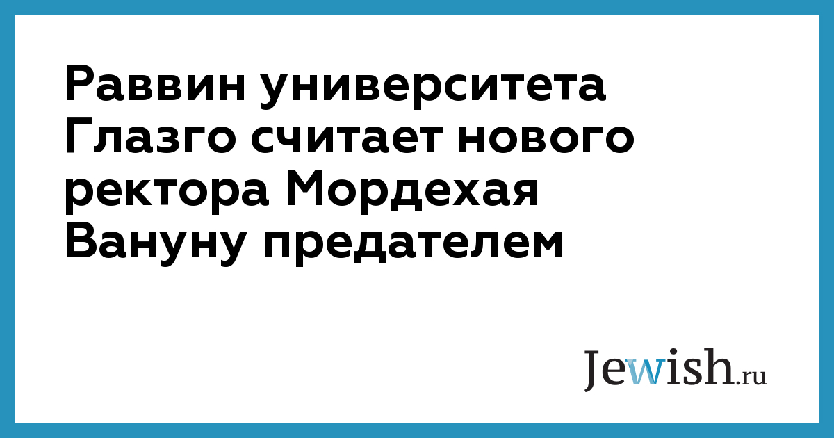 Раввин университета Глазго считает нового ректора Мордехая Вануну предателем