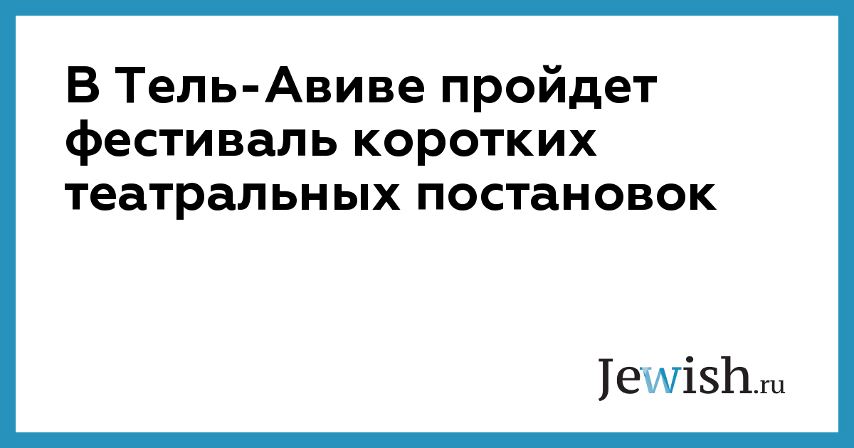 В Тель-Авиве пройдет фестиваль коротких театральных постановок