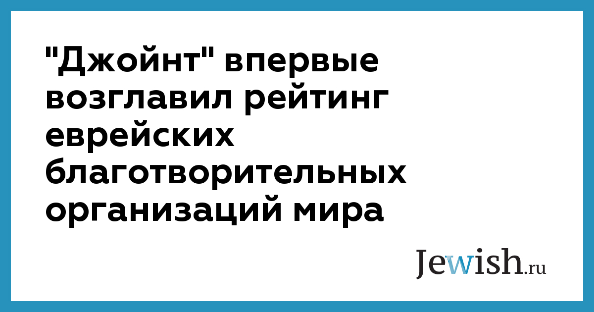 "Джойнт" впервые возглавил рейтинг еврейских благотворительных организаций мира