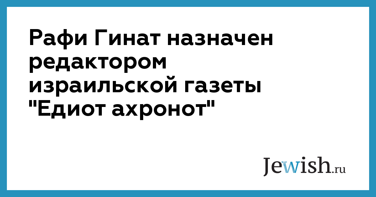 Рафи Гинат назначен редактором израильской газеты "Едиот ахронот"