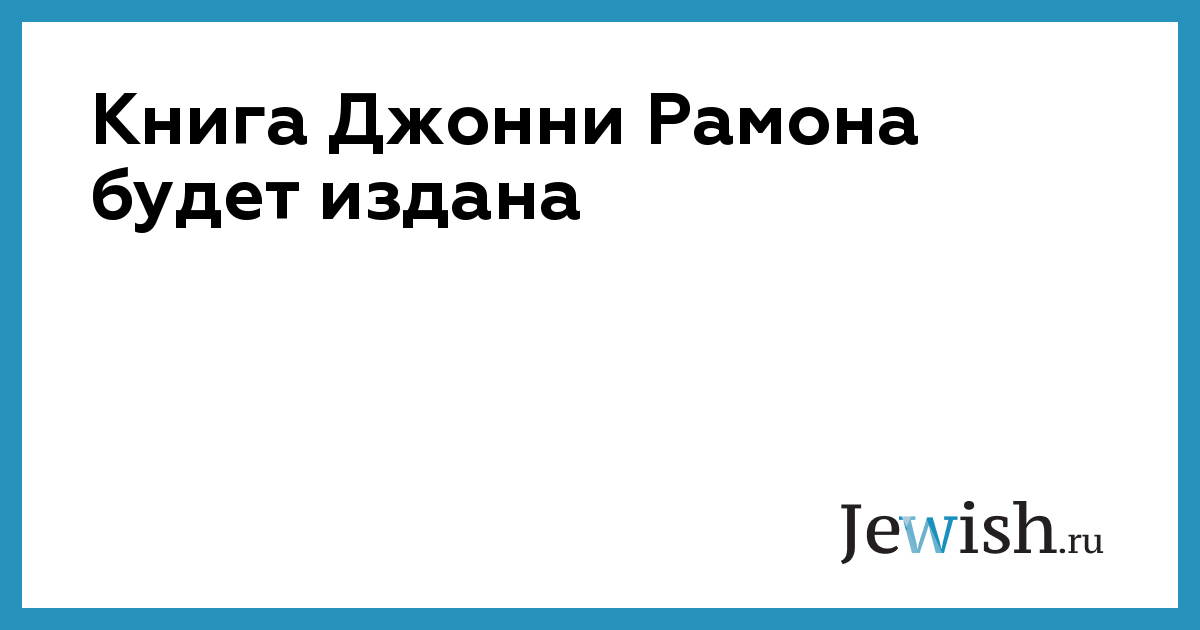 Книга Джонни Рамона будет издана